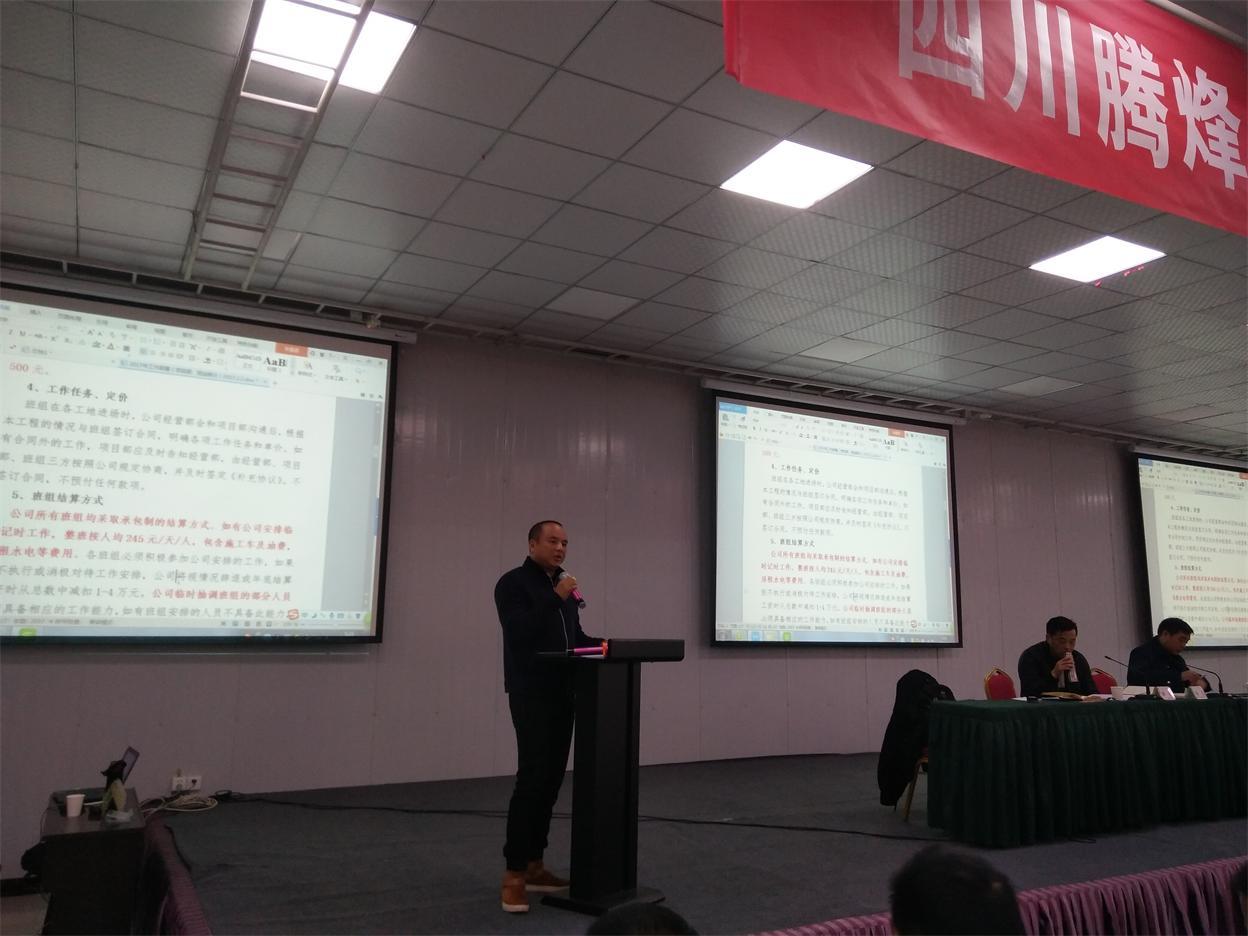 2017年2月3日,我公司在四川岳池豪庭假日酒店4樓會議室召開《2017年工作部署會議》,會議上總經(jīng)理蔣浩做開場致辭并對公司的整體方向進行安排。其中劉朝東對公司的產(chǎn)值報表進行優(yōu)化改進說明,公司領(lǐng)導蔣亞軍對公司2017年班組管理工作進行要求,公司領(lǐng)導吳清明對公司的外協(xié)隊伍管理工作進行匯報。會議最后公司副總經(jīng)理蔣晶對公司的前景及發(fā)展要求進行概述,希望公司所有員工共同努力,共同進步,與公司一起邁入下一個新紀元。